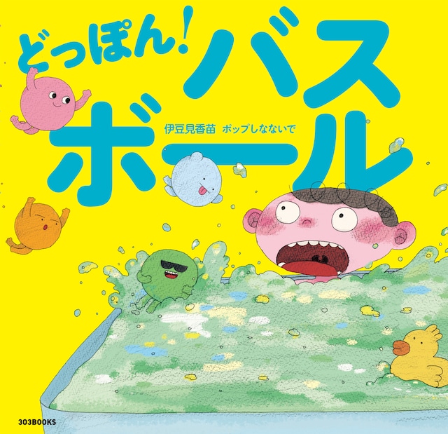 【特典あり】特典シール 【特典プラス】ご購入者全員にoi shopさんが描いた「さんまるさんマン」ステッカーをプレゼント! 絵・文・企画:伊豆見香苗 文・企画:ポップしなないで かめがいあやこ(Vo.Key.) かわむら(Dr.) 伊豆見香苗×ポップしなないで『シナぷしゅ』人気楽曲でおなじみのコラボ再び! お風呂ぎらいも好きになるバスボール絵本、誕生! テレビ東京系子ども番組『シナぷしゅ』人気楽曲「かぞえうた」「あめのちくもりのち」でおなじみの最高トリオが再集結!今度は絵本をつくりました。また、コラボ絵本だからこそのスペシャルなお楽しみとして、ポップしなないでによるテーマソング「どっぽん!バスボール」も同時リリース! MVは伊豆見香苗が担当しています。 ◎テーマは、みんな大好きバスボール! お風呂がつまらないぼうやのもとにある日ふしぎなバスボールが現れて、湯船にどっぽん! するとお風呂場がたちまち大変身。湯気の先に広がるのは、おかしの国、遊園地、ジャングル、そして……お、おばけの世界!? ◎探し絵もできる!じっくり長く楽しめる絵本 本作では、伊豆見香苗が手描きイラストに挑戦。 すみずみまで描きこまれた世界には、思わずクスッと笑っちゃう場面がいっぱい。 あちこちで小さなキャラクターたちが自由気ままに動き回り、眺めるたびに楽しい発見があります。 また、本作で訪れるいろいろな世界では、探し絵もできちゃう! 時間を忘れて絵本の世界に「どっぽん!」と浸れる一冊です。 絵・文・企画:伊豆見香苗 沖縄出身。美術大学在学中からアニメ、イラスト、漫画など幅広く制作し「#GIF の伊豆見」で SNSに投稿している。激しく動く『えっびっ』は自身の代表作で、LINEスタンプが DL 数で堂々のランクイン。ぽっぷしなないでやYOASOBI の楽曲のミュージックビデオ制作、テレビ東京系『シナぷしゅ』 のアニメ制作等、幅広く活動中。主な著作に『えっびっ このこ だいっきらい』(303BOOKS)がある。 文・企画:ポップしなないで かめがいあやこ(Vo.Key.) かわむら(Dr.) 2015年結成のVo.Key.かめがいあやこ、Dr.かわむらによる、軽やかに無常を歌うポップを日々生み出す2人組バンド。かわむらの作るどこか寂しげだが前向きな歌詞世界と、かめがいの表情豊かなクセの強いボーカルで、ミニマムな構成ながら編成に囚われない、完成された音楽性を持つ。独自の楽曲哲学に沿ったMVや、確かな表現力により世界観を再現するライブパフォーマンスが話題。 この本の特設サイト https://303books.jp/bathball/ 横210mm×縦200mm 45ページ / フルカラー / 上製 ISBN: 978-4-909926-49-4