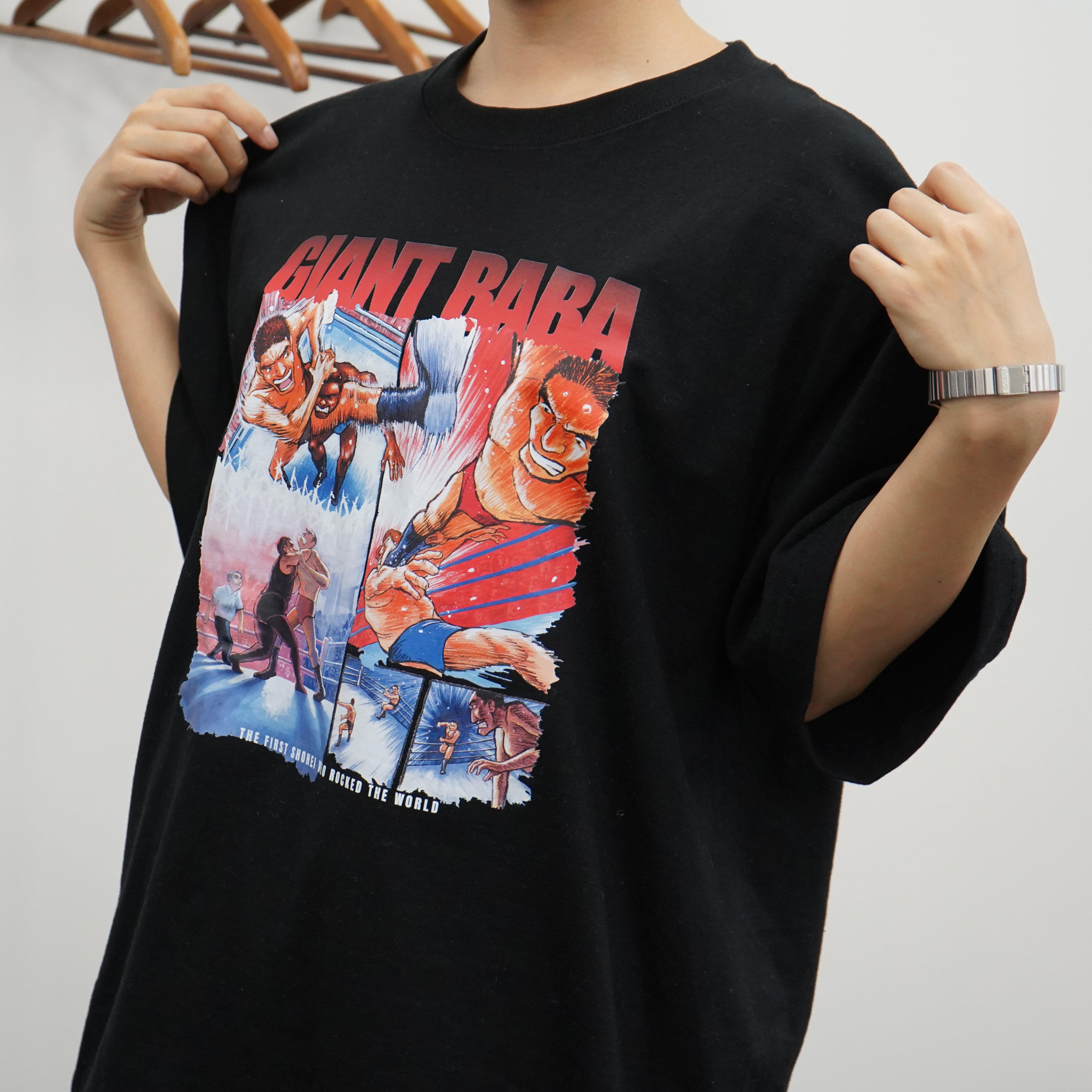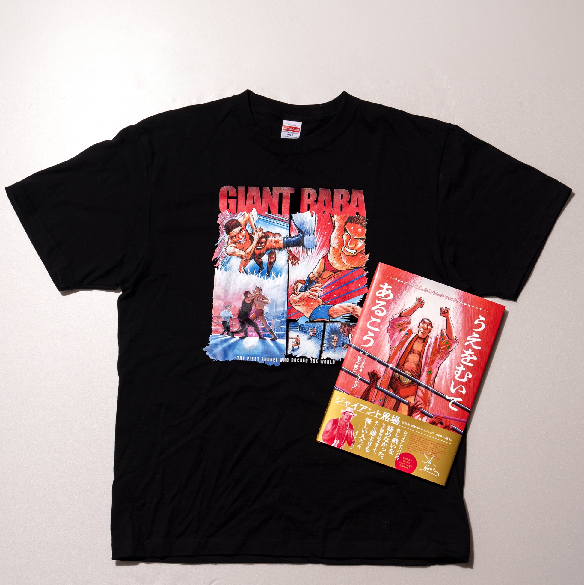 『うえをむいてあるこう〜ジャイアント馬場、世界をわかせた最初のショーヘイ』のコラボTシャツです。マンガ家・坂上暁仁さんがジャイアント馬場の激闘を描き出しました
