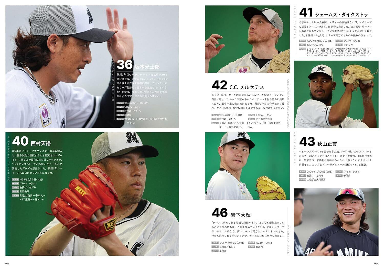 2024年3月時点でのマリーンズの全選手名鑑です。育成選手やコーチングスタッフも掲載されており、今シーズンのチームのすべてがわかります。
