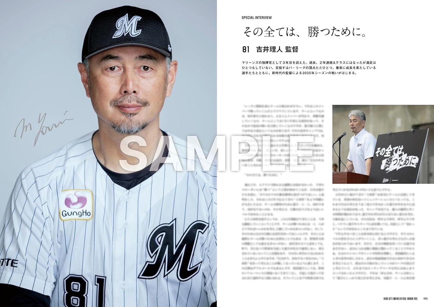 昨年のイヤーブックから80ページ増の全208ページの大ボリュームでリニューアル。マリーンズに所属する全選手*のポートレートをオリジナルで撮り下ろしています(*2025年3月時点)。