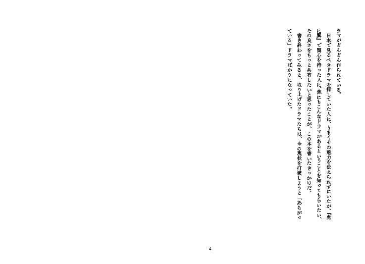 日本のみならず、香港や台湾、韓国のドラマや映画などといったエンターテイメントについて様々な媒体で執筆する筆者が、日々目まぐるしく変化する価値観や社会のあり方を敏感に捉えた日本のテレビドラマの中から23作品を厳選し、様々な切り口から書き尽くした一冊。